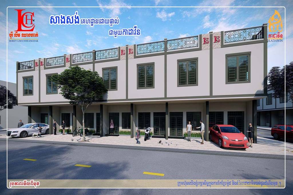 Situated in Northern Phnom Penh City, in the middle of booming Chroy Changva District, the Kadawin Town East is the best choices of small and medium business and customers who are looking for new shop houses and modern link houses. Kadawin Town East will be your new town which pleases you with European style shop houses and modern life style link houses from our Cambodian designers who immaculate architecturally designed residence has left nothing to chance by utilising only the finest materials with premium finishes. Come, enjoy for yourself and experience the fresh environment like never before. Become the owner of shop house or link house from your dream.